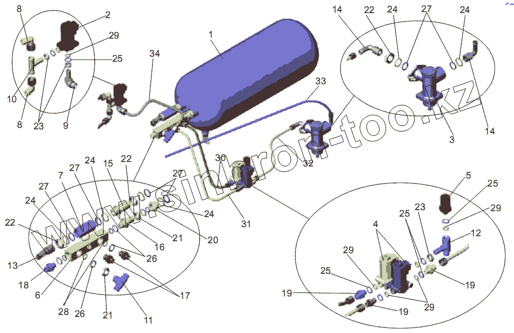 Каталог запасных частей к технике: АМАЗ МАЗ-256 (вариант). Установка ресивера привода дверей