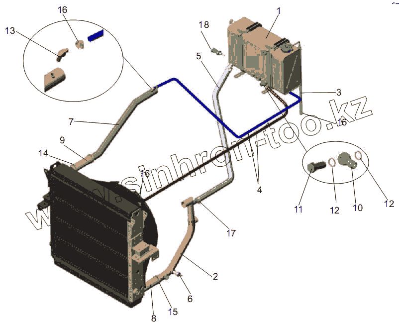 Каталог запасных частей к технике: АМАЗ МАЗ-256 (вариант). Установка системы охлаждения