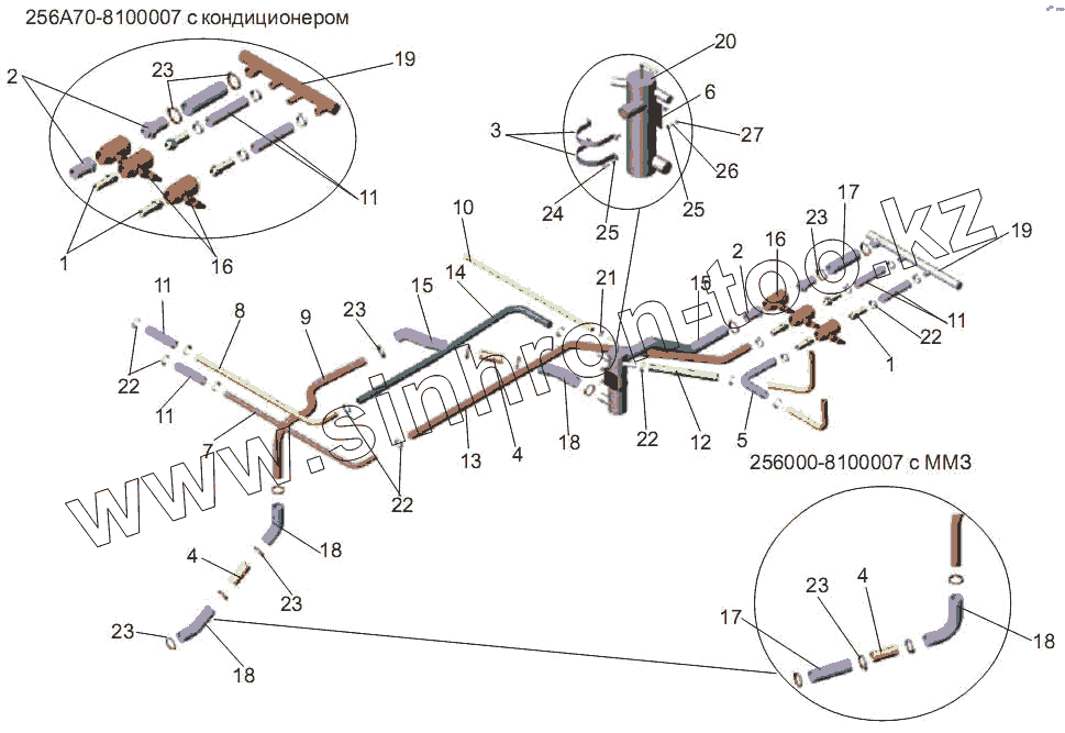 Каталог запасных частей к технике: АМАЗ МАЗ-256 (вариант). Установка системы отопления в моторном отсеке