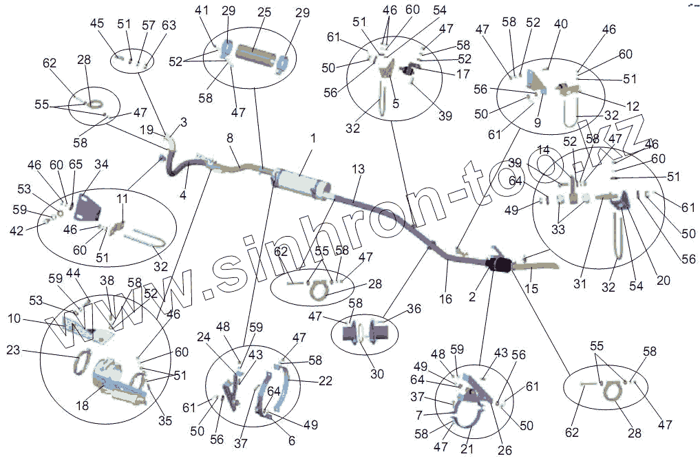 Каталог запасных частей к технике: АМАЗ МАЗ-256 (вариант). Установка системы выпуска отработавших газов