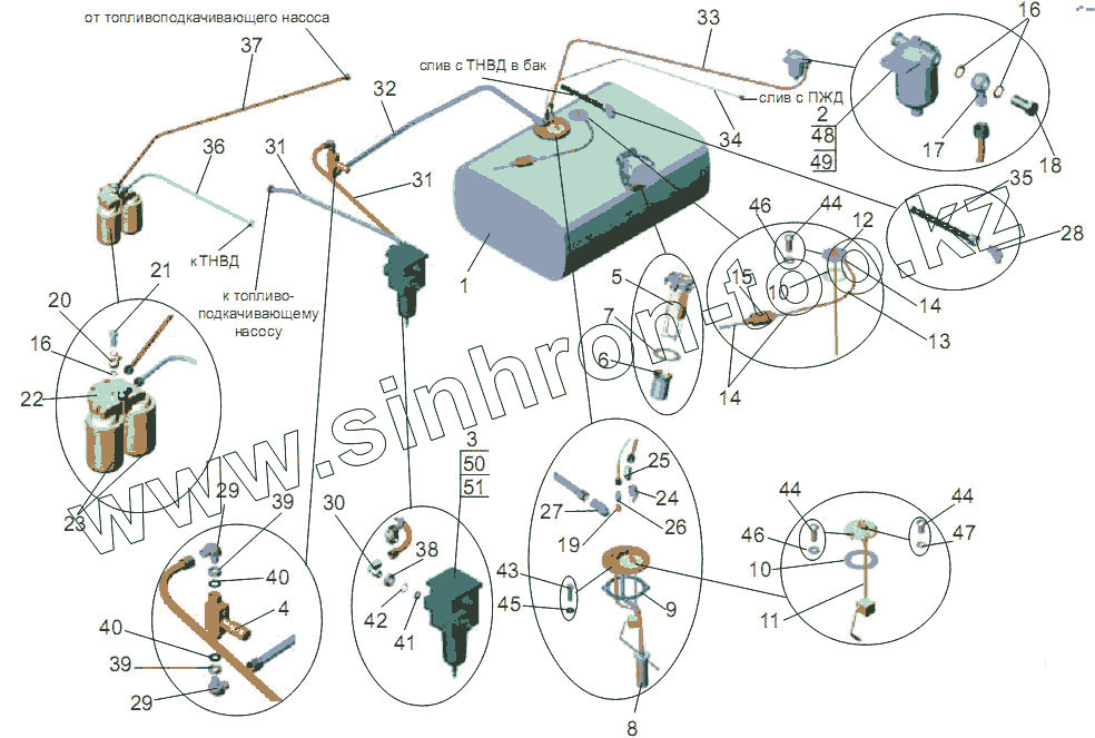 Каталог запасных частей к технике: АМАЗ МАЗ-256 (вариант). Установка топливопроводов