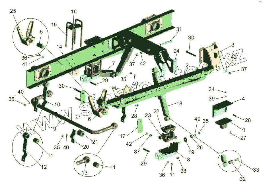 Каталог запасных частей к технике: АМАЗ МАЗ-256 (вариант). Задняя подвеска