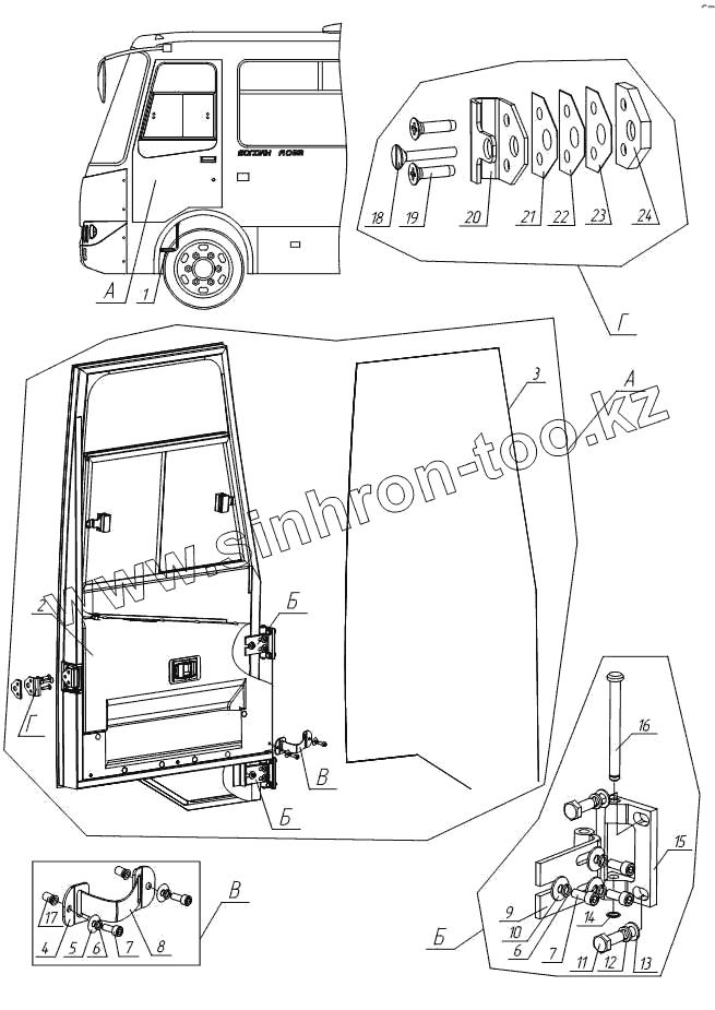 Каталог запасных частей к технике: Богдан А-092. Дверь водителя