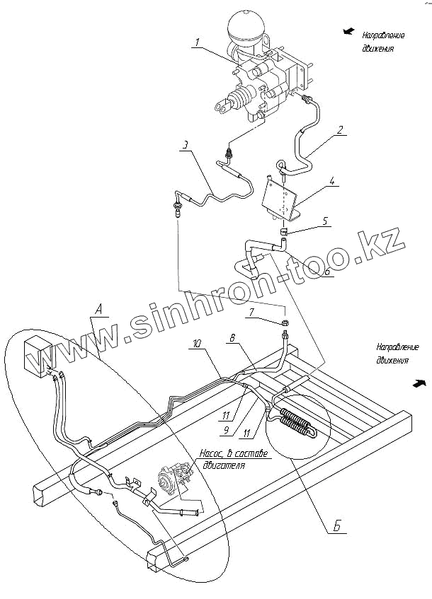 Каталог запасных частей к технике: Богдан А-092. Гидроусилитель тормозов и его трубопроводы