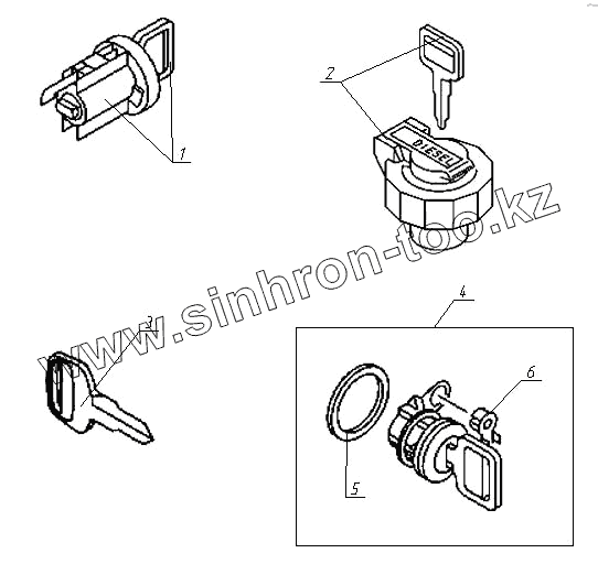 Каталог запасных частей к технике: Богдан А-092. Комплект ключей, замок зажигания, крышка топливного бака
