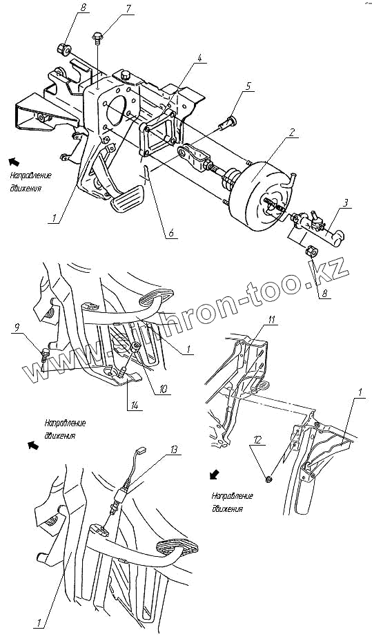 Элементы крепления тормозных, вакуумных, топливных трубок и трубок сцепления к раме