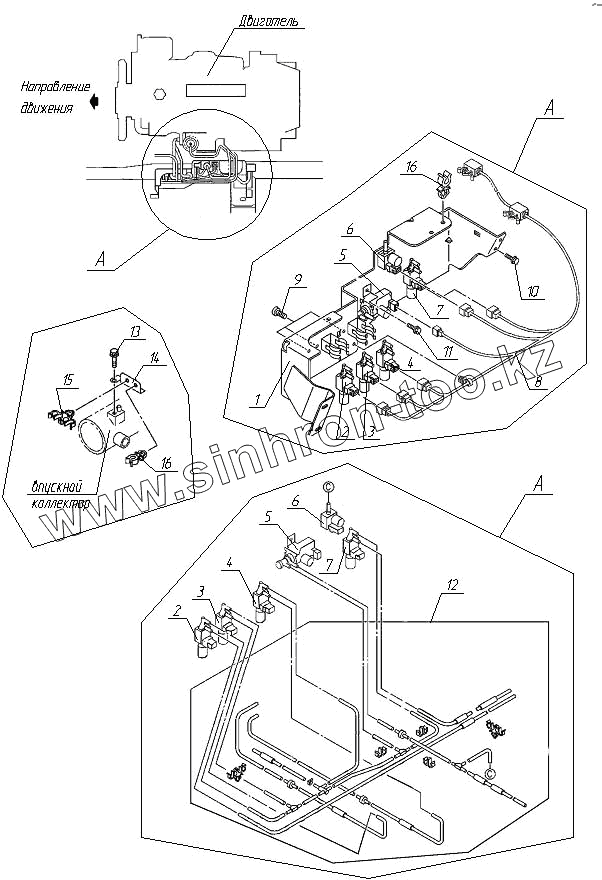 Каталог запасных частей к технике: Богдан А-092. Органы управления выпускной системы