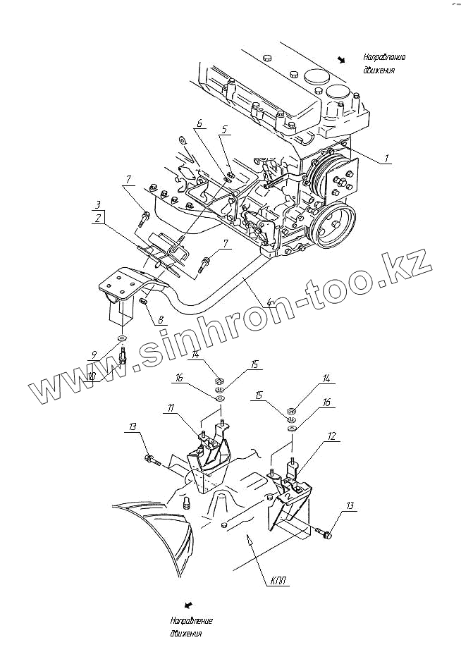 Каталог запасных частей к технике: Богдан А-092. Установка двигателя на раму