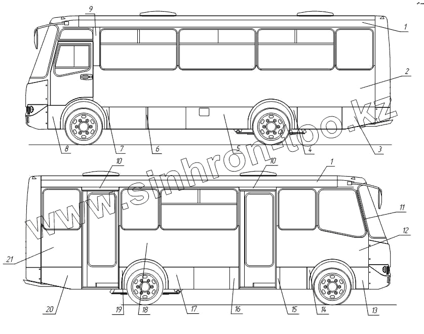 Каталог запасных частей к технике: Богдан А-092. Внешняя обшивка кузова