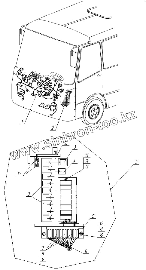 Каталог запасных частей к технике: Богдан А-092. Жгуты панели управления, блок переключателей