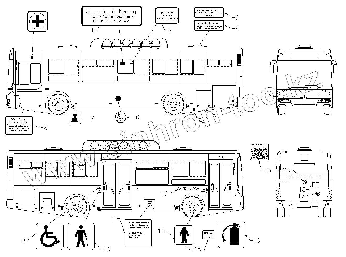 Каталог запасных частей к технике: Golden Dragon XML6105CN-7150227. NAME PLATE, COMPLETE SET