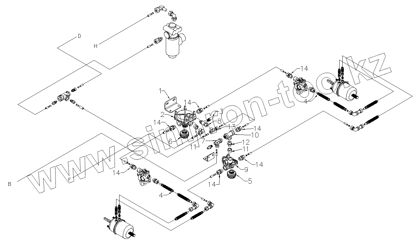 | 12 | 6860E01-3506772 | Connector body, 4-way protective valve | |