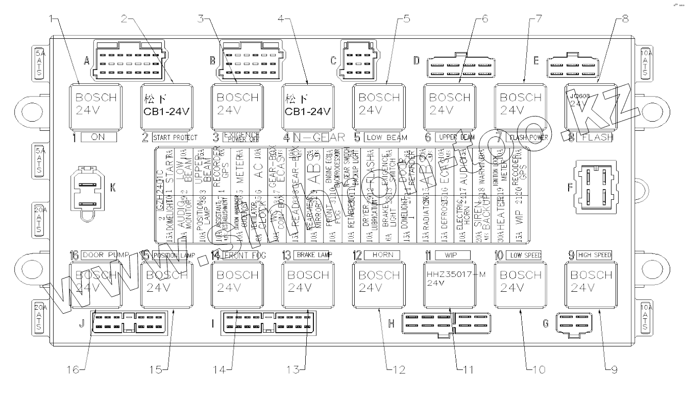 Каталог запасных частей к технике: Golden Dragon XML6125CN-3150244. 6125Y07-3700100-R0 ELECTRIC BOX