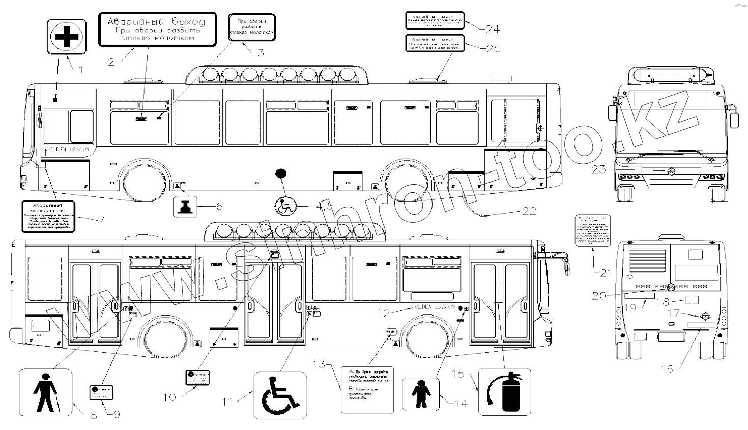 Каталог запасных частей к технике: Golden Dragon XML6125CN-3150244. NAME PLATE, COMPLETE SET