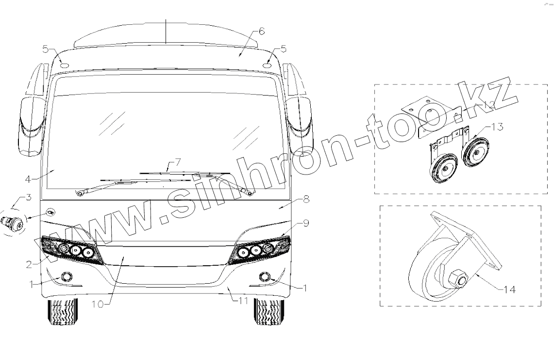 Каталог запасных частей к технике: Golden Dragon XML6127CNG-3141495. FRONT PANEL