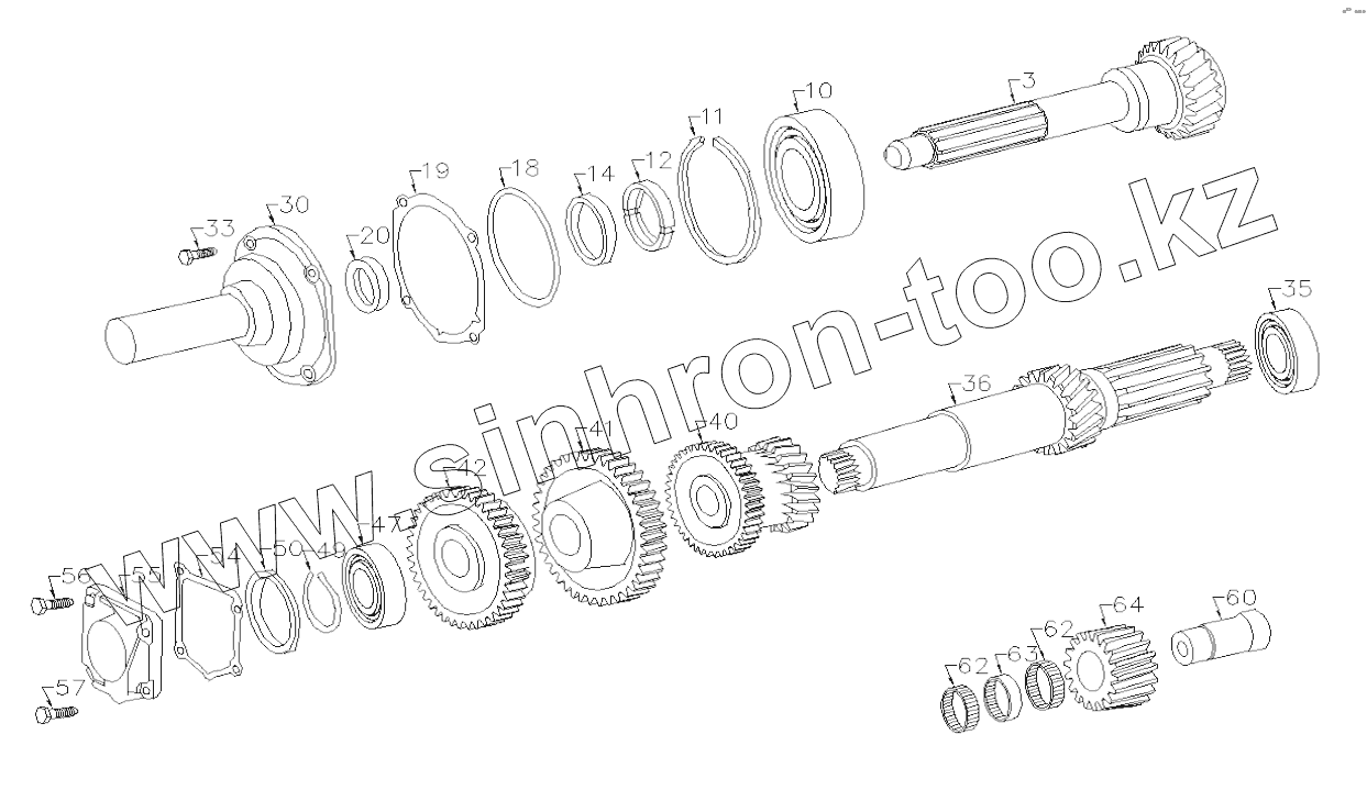Каталог запасных частей к технике: Golden Dragon XML6127CNG-3141495. INPUT SHAFT, COUNTERSHAFT & REVERSE GEAR SHAFT ASSY