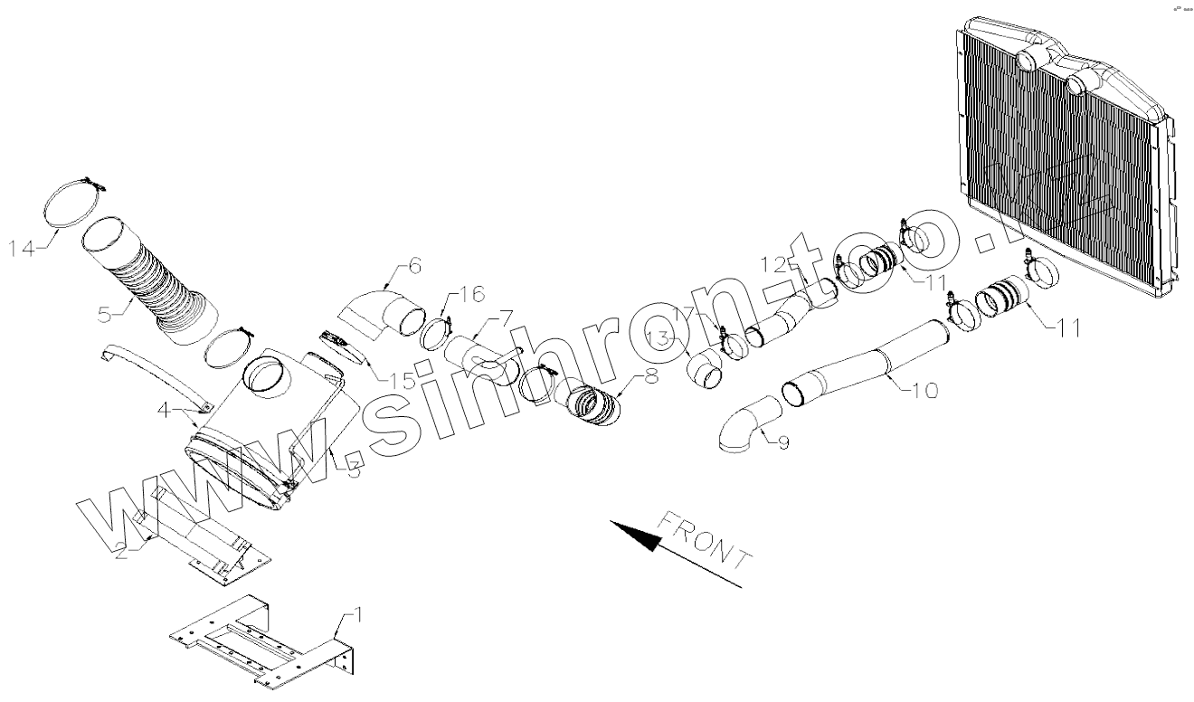 Каталог запасных частей к технике: Golden Dragon XML6139JR-3141082. AIR INTAKE SYSTEM
