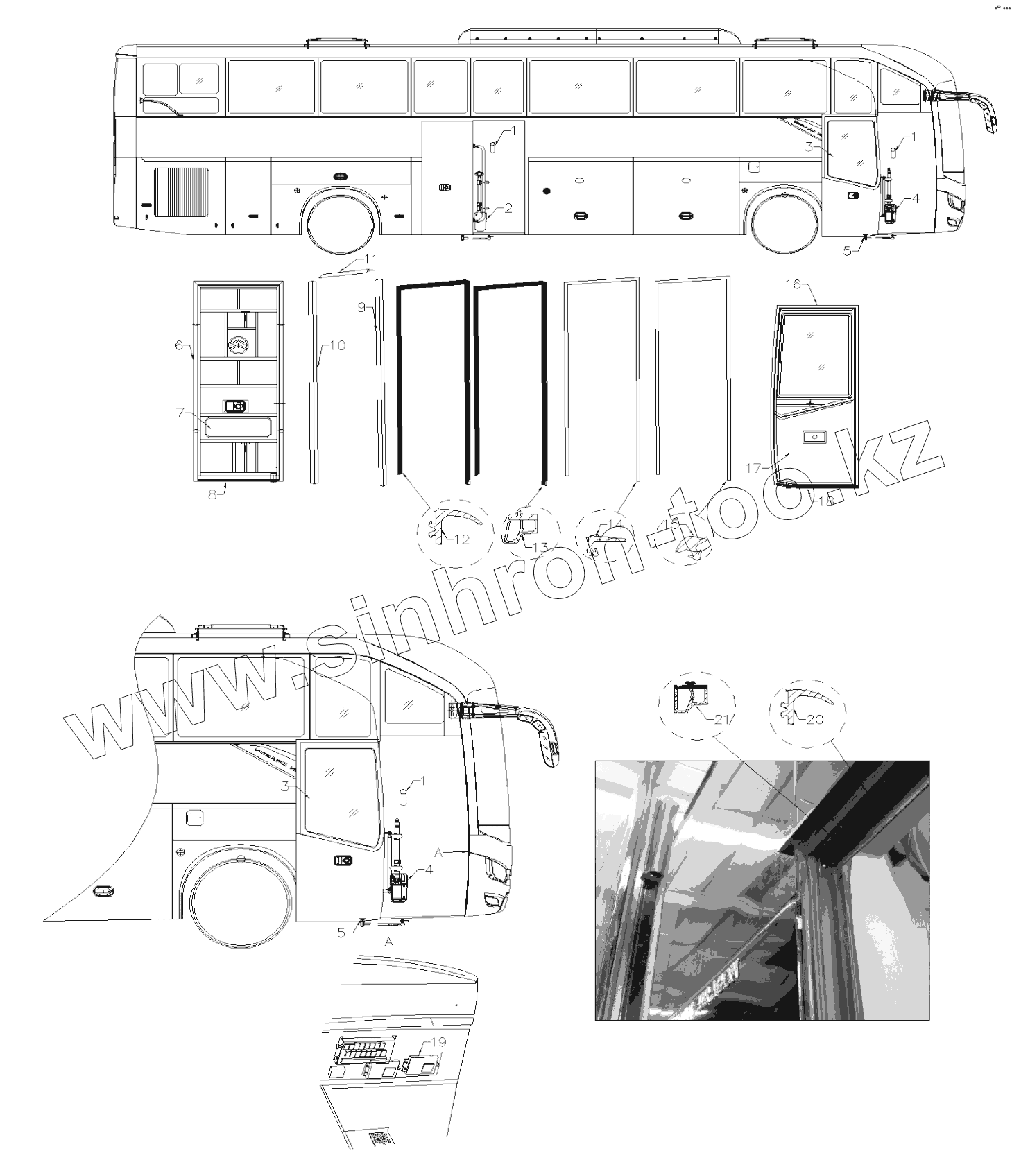 Каталог запасных частей к технике: Golden Dragon XML6139JR-3141082. PASSENGER DOOR INSTALLATION ASSEMBLY