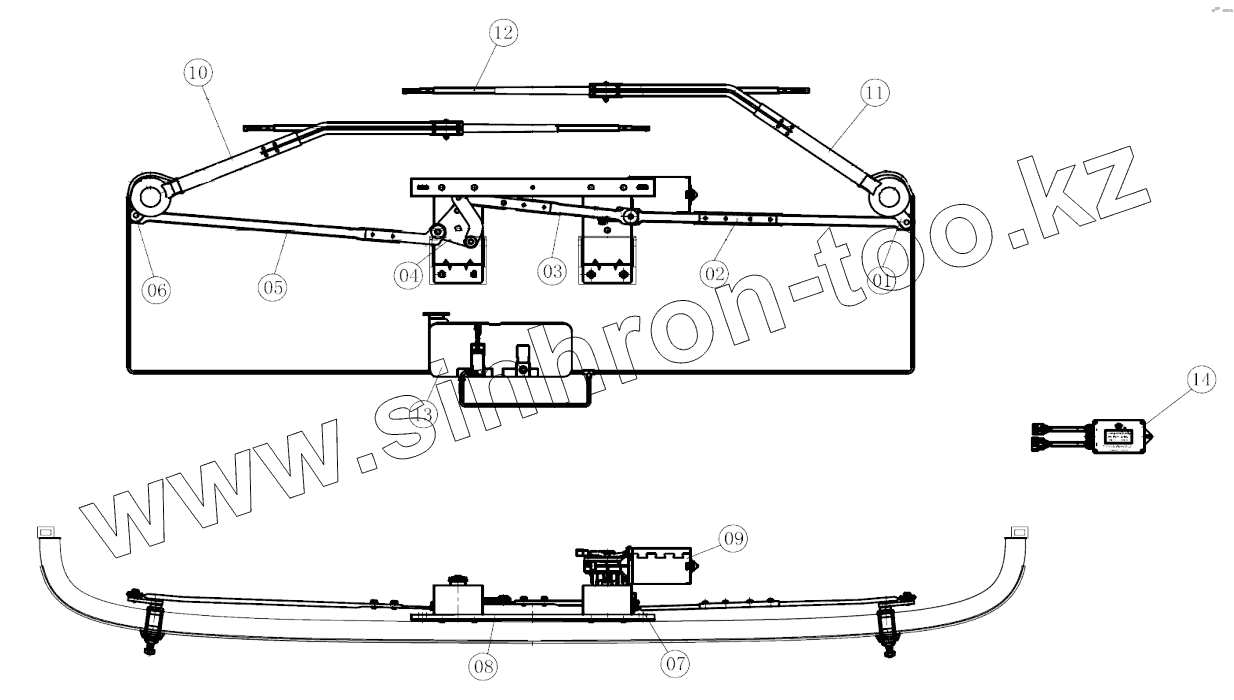 Каталог запасных частей к технике: Golden Dragon XML6845CN-3150236. 6925E01-3735160-R0 FRONT WIPER