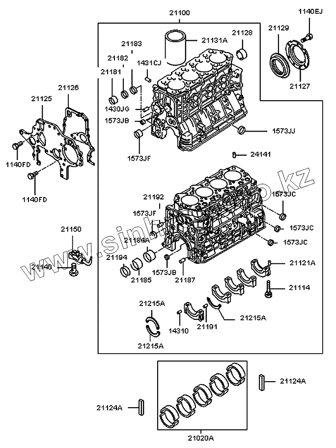 Каталог запасных частей к технике: Hyundai County. Блок цилиндров