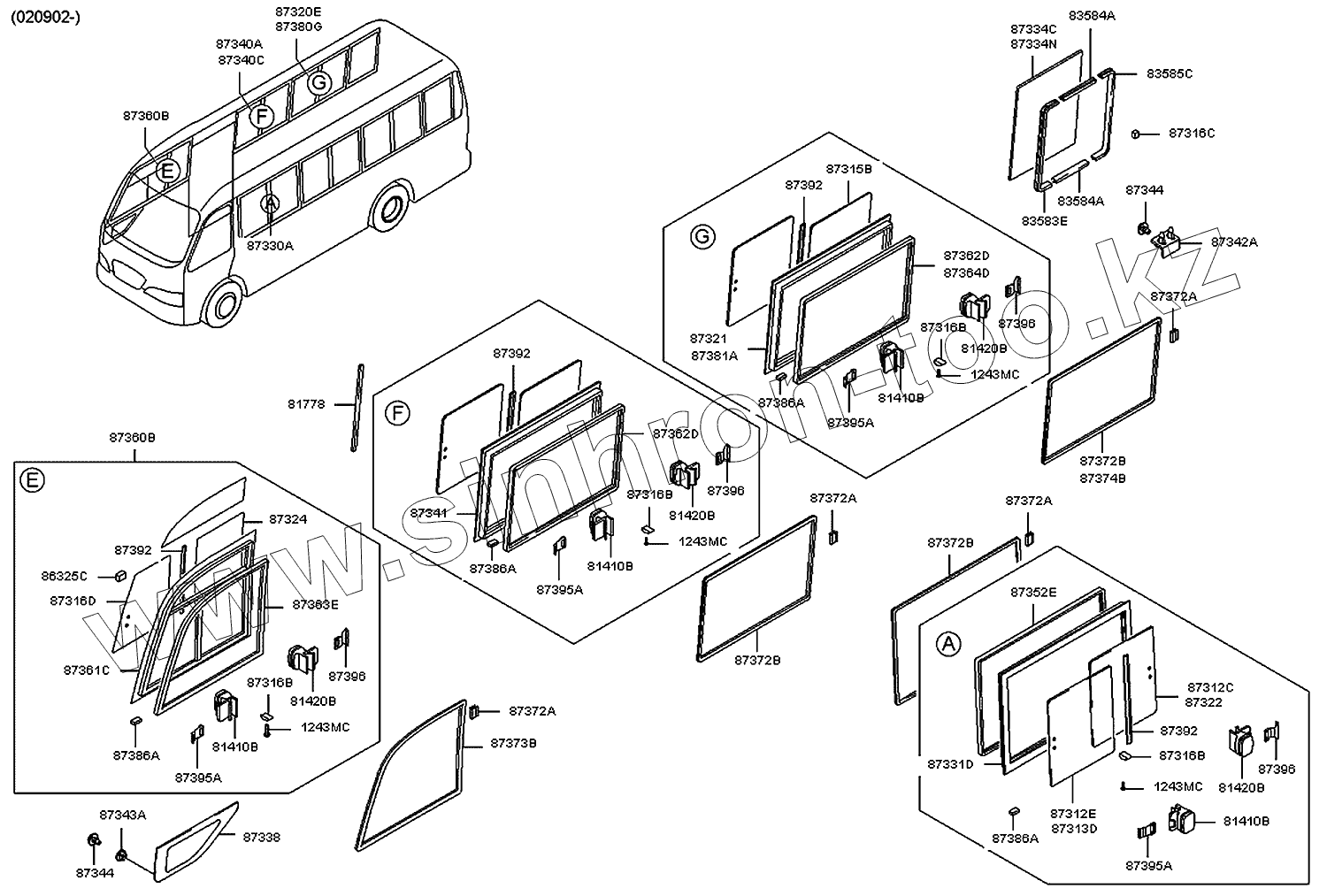 | 87380G | 87380-5A200 | Окно в сборе-боковое | |