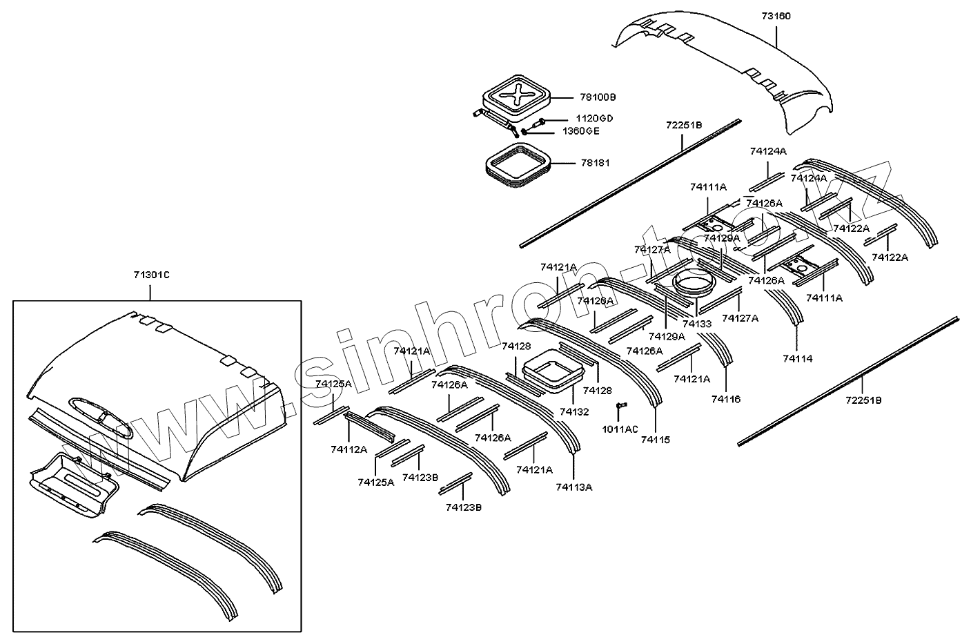 | 74113A | 74113-5A000 | Рама крыши | |