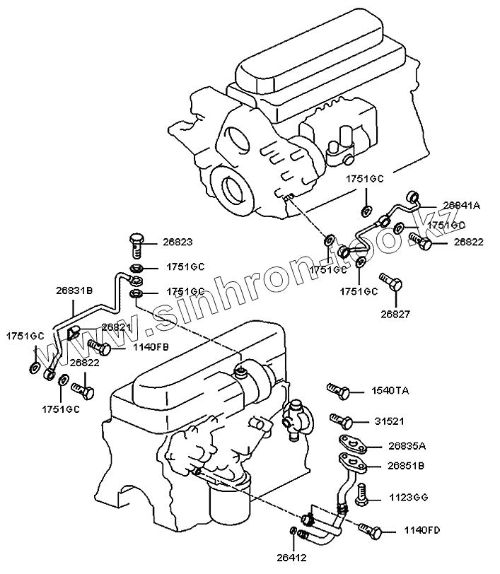 Каталог запасных частей к технике: Hyundai County. Масляные трубопроводы