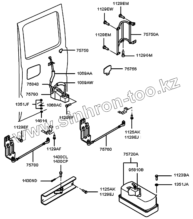 Каталог запасных частей к технике: Hyundai County. Механизм открывания двери