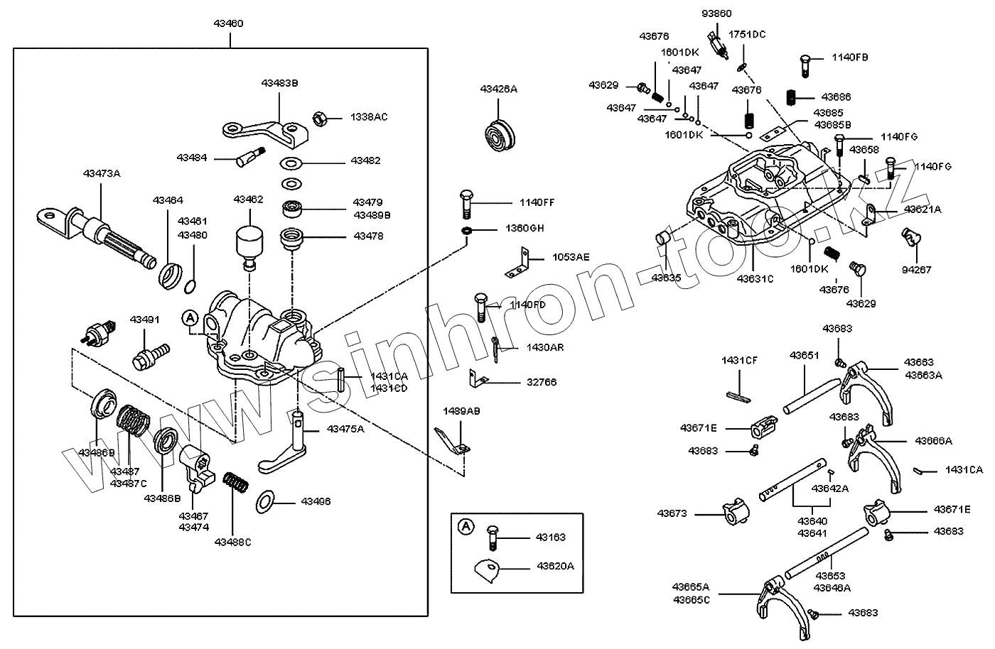 Каталог запасных частей к технике: Hyundai County. Механизм переключения передач