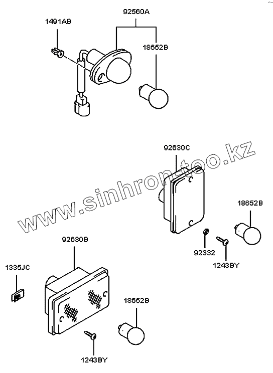 Каталог запасных частей к технике: Hyundai County. Освещение ступенек и номерного знака