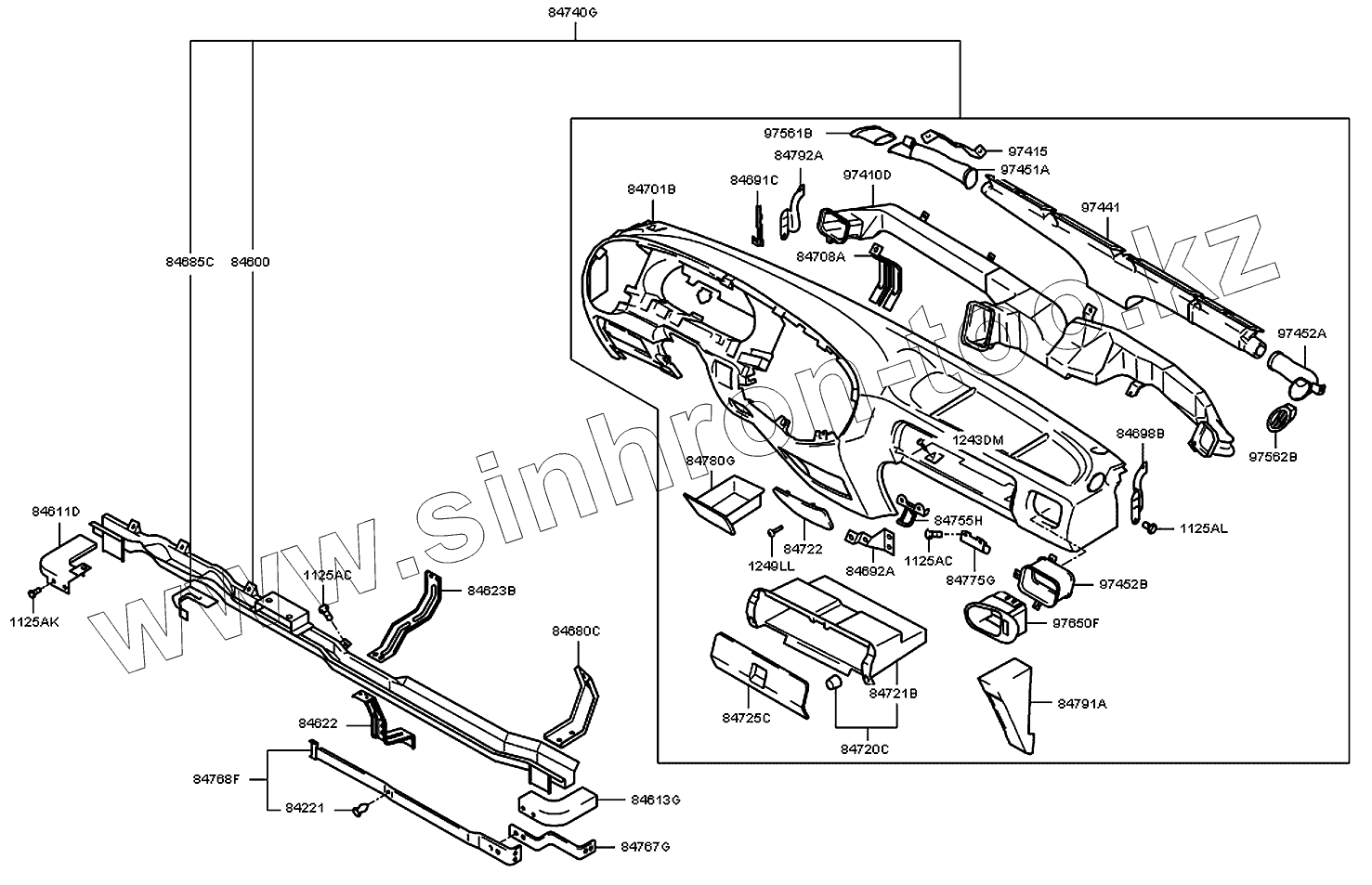 | 84696B | 84696-5A000 | Кронштейн крепления панели приборов левый | |