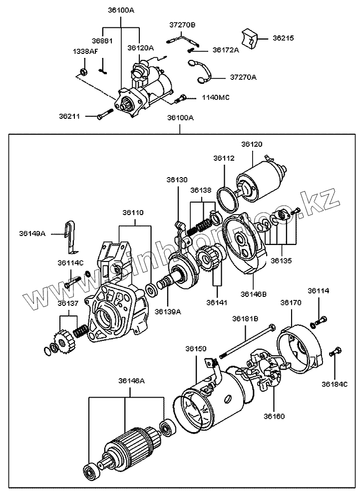 Каталог запасных частей к технике: Hyundai County. Стартер