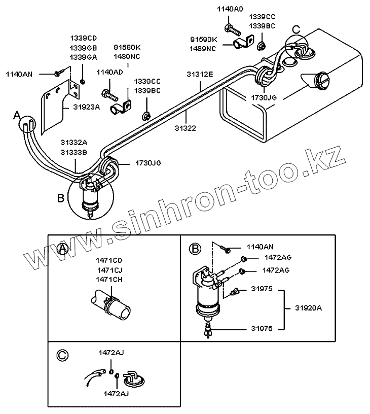 | 31333B | 31333-5H100 | Топливный шланг | |