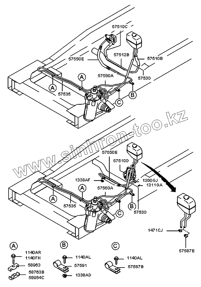 Каталог запасных частей к технике: Hyundai County. Трубопроводы гидроусилителя рулевого управления