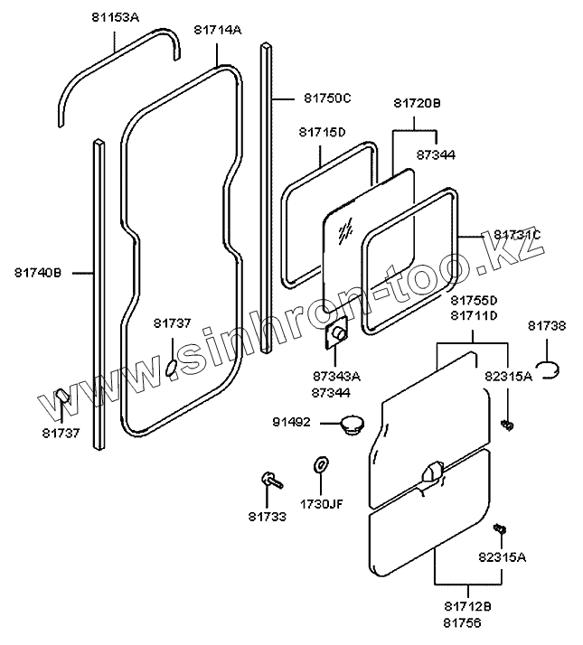 Каталог запасных частей к технике: Hyundai County. Уплотнители задней двери