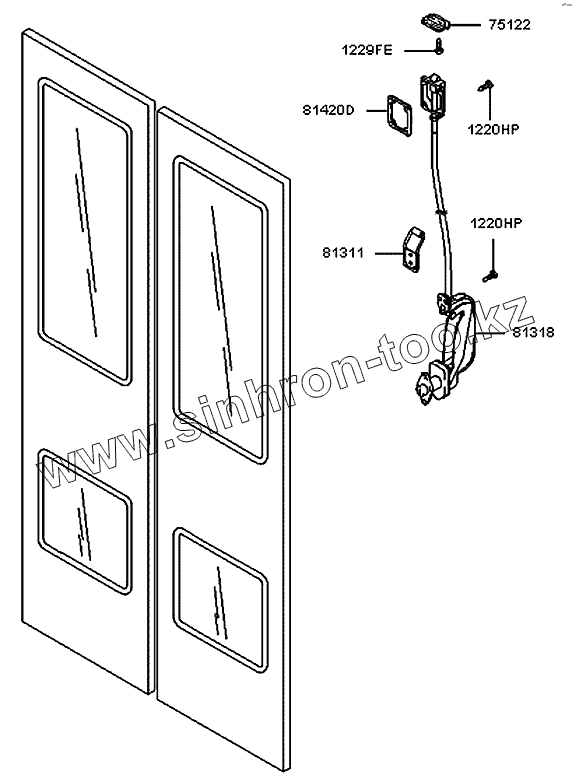 Каталог запасных частей к технике: Hyundai County. Замок задней двери
