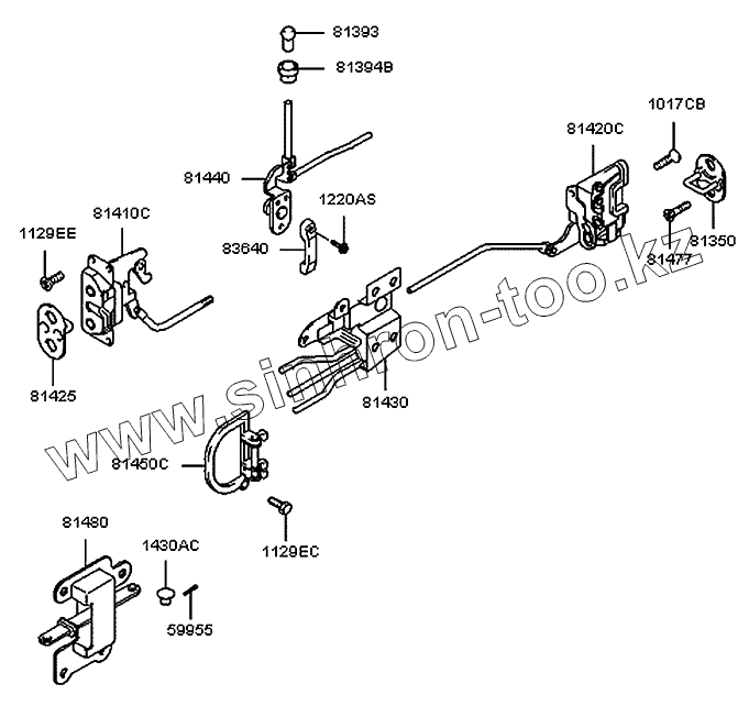 Каталог запасных частей к технике: Hyundai County. Замок задней двери