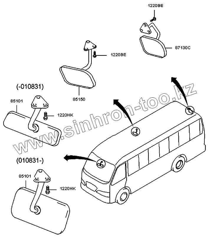 Каталог запасных частей к технике: Hyundai County. Зеркала