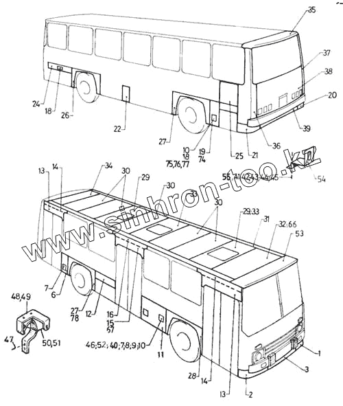 Каталог запасных частей к технике: Ikarus 260.50. Наружные облицовочные панели