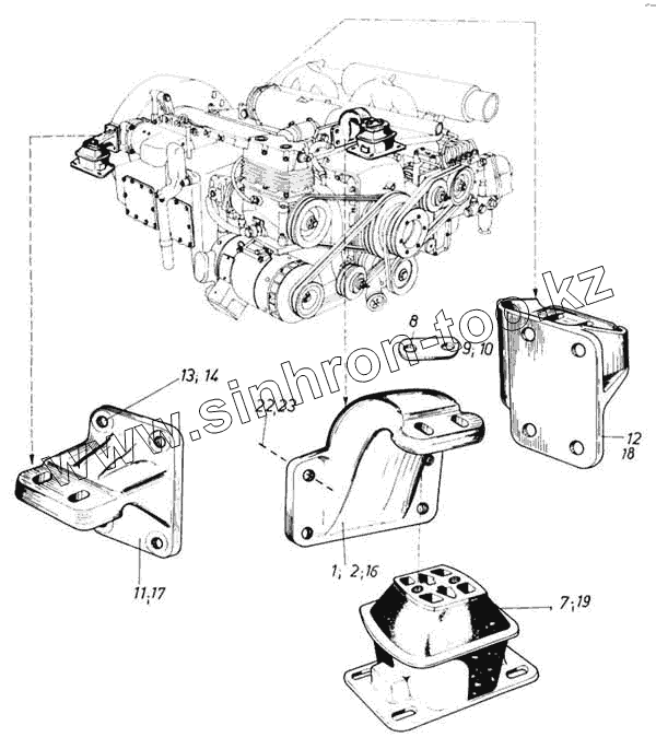 Каталог запасных частей к технике: Ikarus 260.50. Подвеска двигателя