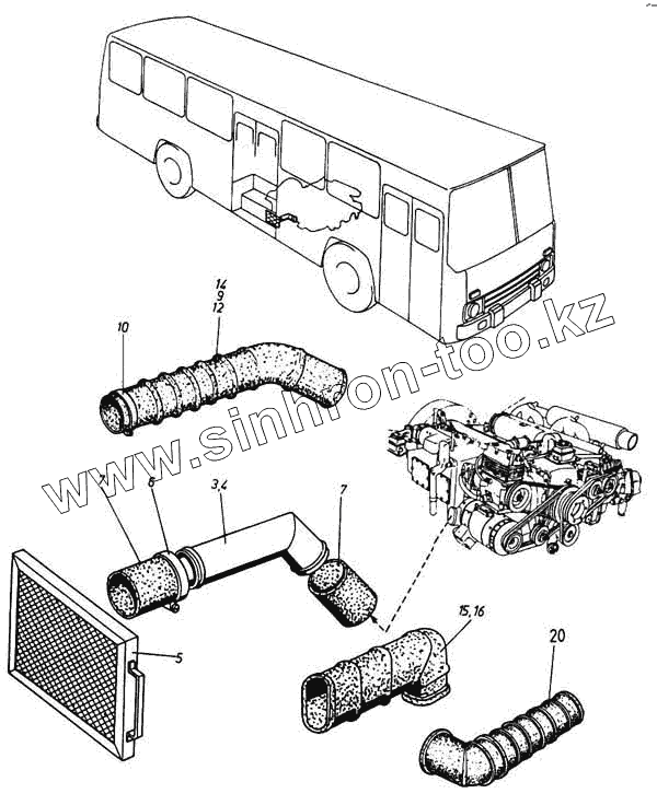 Каталог запасных частей к технике: Ikarus 260.50. Установка приемной трубы генератора