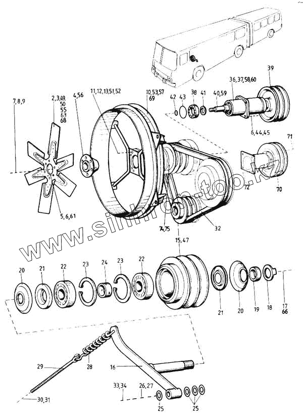 Каталог запасных частей к технике: Ikarus 260.50. Вентилятор и его привод