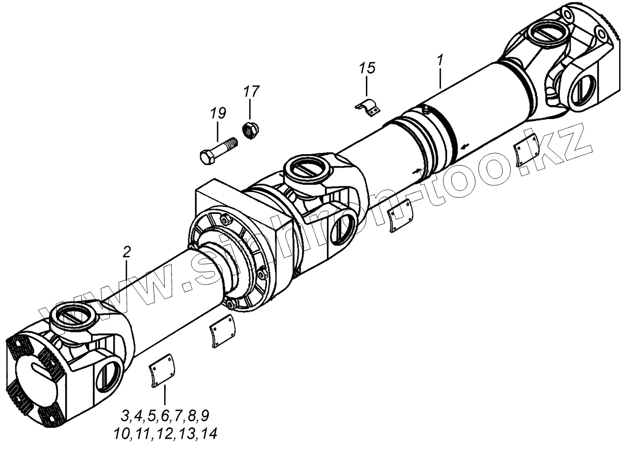 Каталог запасных частей к технике: Камский автозавод 4308-А3. 4308-2201006-91 Вал карданный трехшарнирный