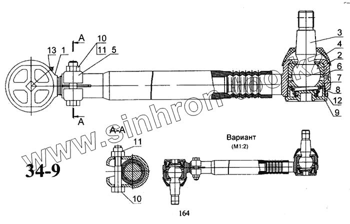 Каталог запасных частей к технике: Камский автозавод 5297. Тяга сошки с наконечником
