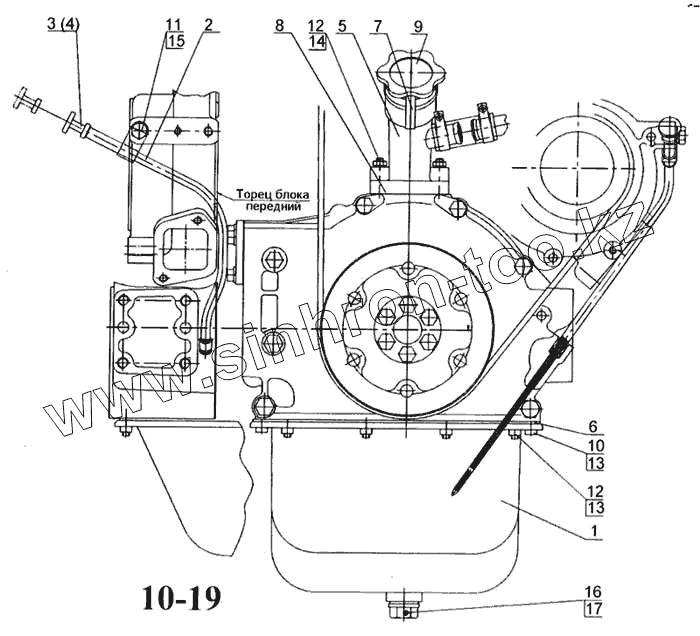 Каталог запасных частей к технике: Камский автозавод 5297. Установка картера, маслоналивного патрубка