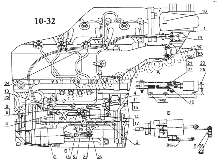Каталог запасных частей к технике: Камский автозавод 5297. Установка пневмоцилиндра и тяг управления ТНВД