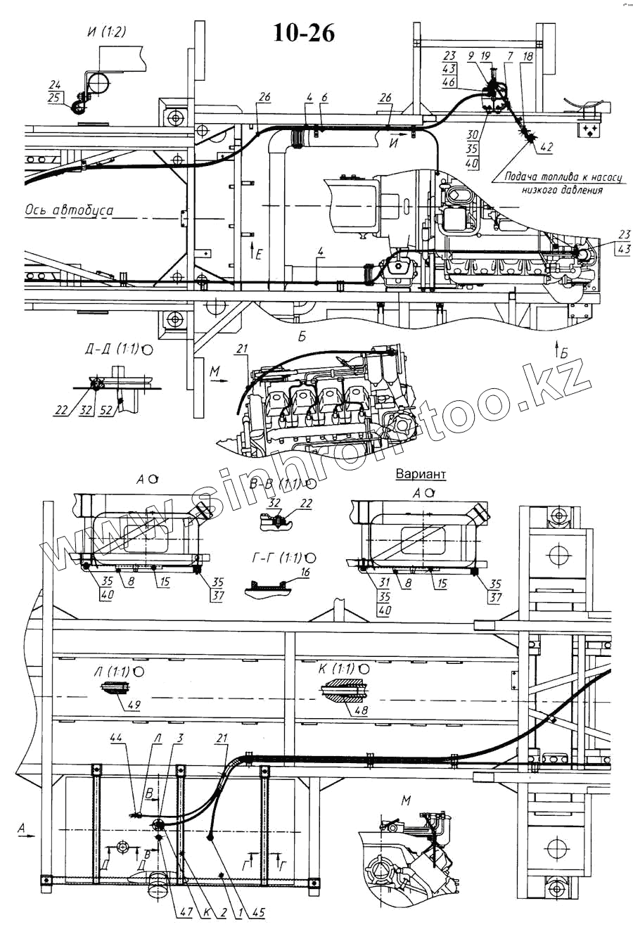 Каталог запасных частей к технике: Камский автозавод 5297. Установка топливного бака, ФГОТ и топливопроводов