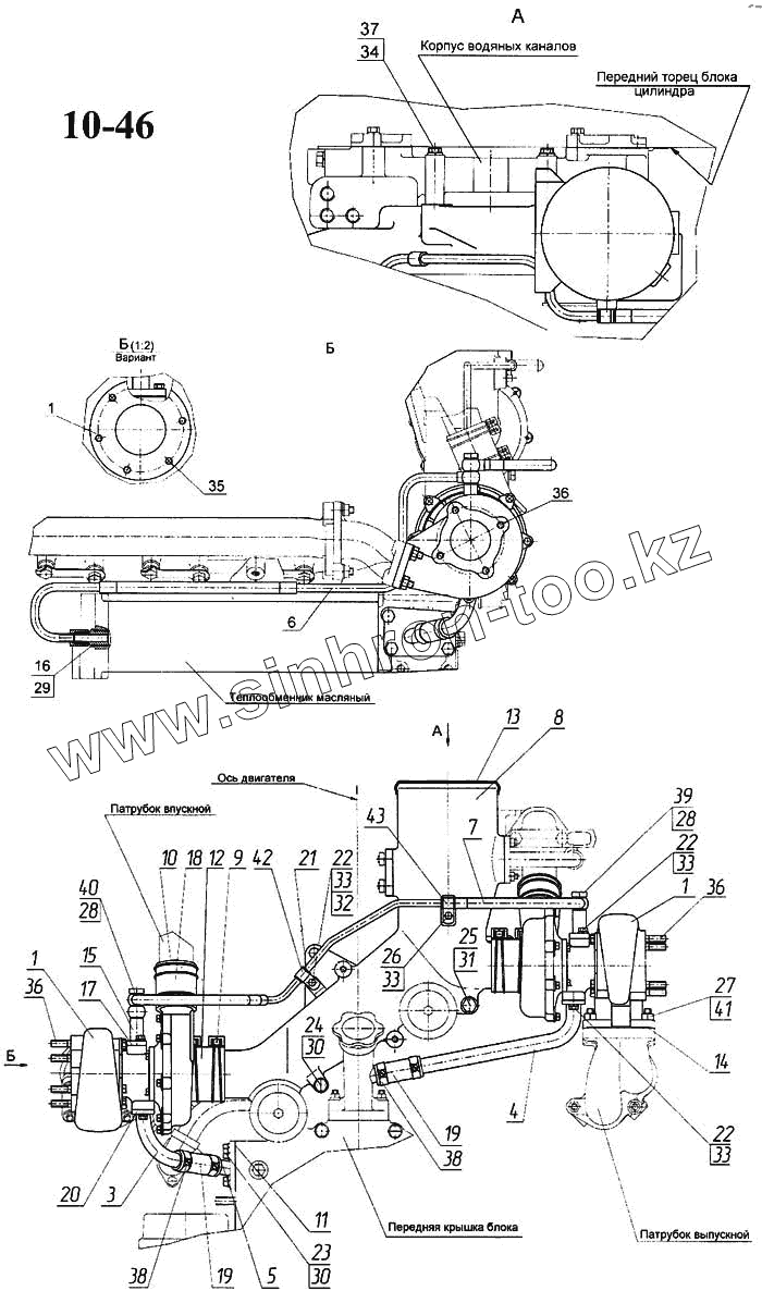 Каталог запасных частей к технике: Камский автозавод 5297. Установка турбокмпрессоров на двигатель