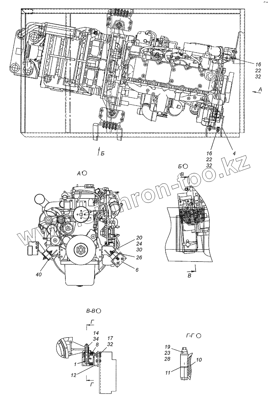 Каталог запасных частей к технике: Камский автозавод Шасси 52974. 52974-1001005 Установка силового агрегата