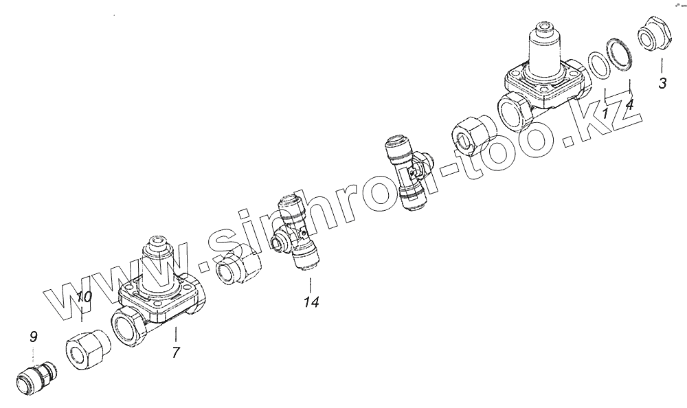 Каталог запасных частей к технике: Камский автозавод Шасси 52974. 52974-3500015-04 Установка защитных клапанов